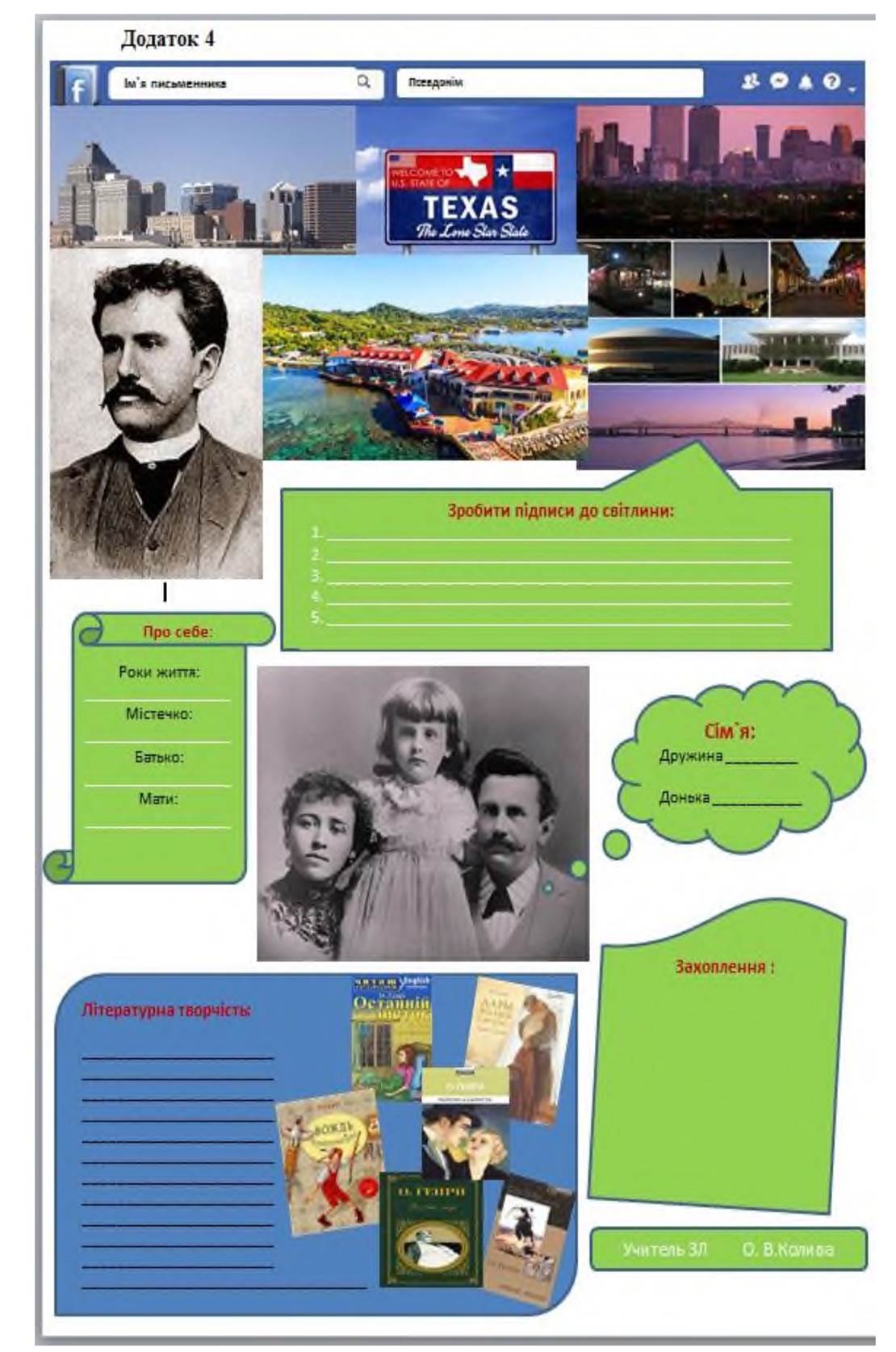 1. Заповнюють Фейсбук сторінку письменника. Додаток 4