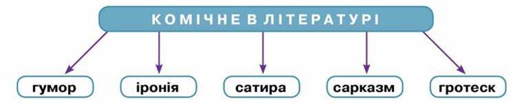 38 класу ви вже знаєте про такі різновиди комічного в літературі, як сатира, гумор, іронія, сарказм. Пригадаймо, що сатирою називають різке висміювання недосконалості світу, людських вад. На відміну від гумору, який асоціюється з доброзичливою усмішкою, жартом, для сатири характерне гнівне засудження того, проти чого (або кого) її застосовують. Сатиру, спрямовану на викриття негативних явищ у житті суспільства, взаєминах людей, називають соціальною.