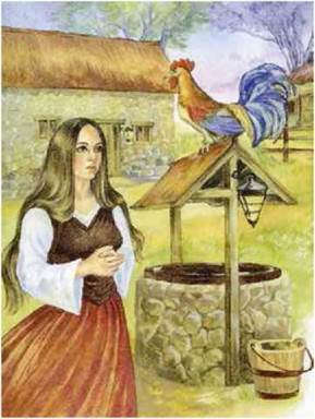 Пішла бідна дівчина до криниці, не знаючи, що й робити. І з великого жалю й страху стрибнула в криницю й знепритомніла.