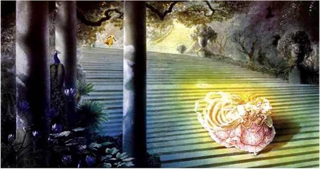 А коли опритомніла, то побачила, що лежить на чудовій луці. Ясно світило сонце, і тисячі розмаїтих квітів квітували навколо неї.
