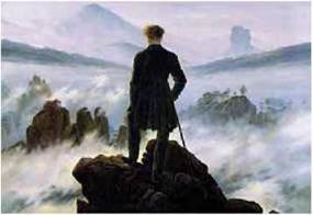 1. Розгляньте репродукції картин Каспара Давіда Фрідріха «Подорожній над морем туману» та «Пейзаж із самотнім деревом». Яким настроєм забарвлена кожна з них?